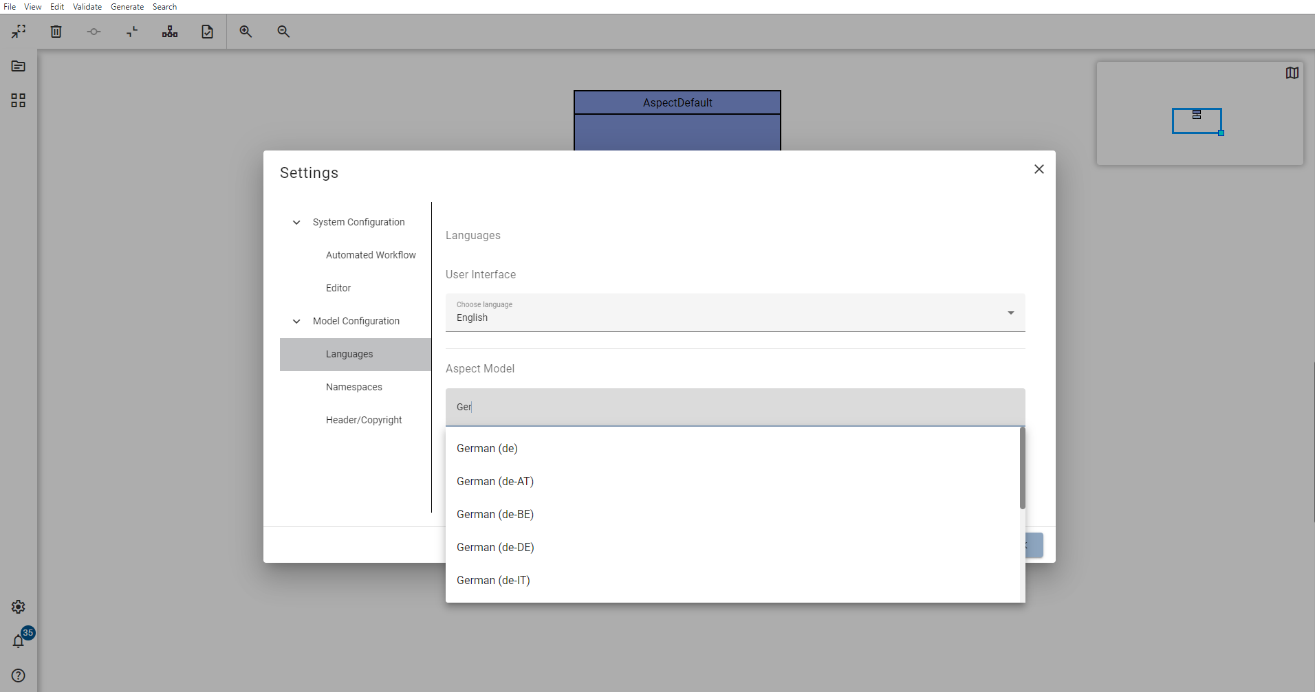 | All attributes of each element in a specific language will be deleted without a way to restore them, when deleting this language from your settings. Make sure to save your model before deleting languages in your settings. |